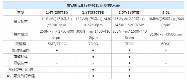 上汽大众新款帕萨特 4种排量