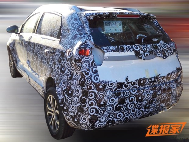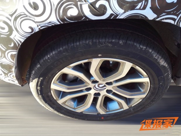在侧面,奇瑞瑞虎1使用的是一套个性的双五辐式轮圈。从侧后方看,这款车车顶配备有行李架,尾部还装有一个小尺寸的扰流板。由于处于测试阶段,所以测试车的尾灯仍未完全安装。