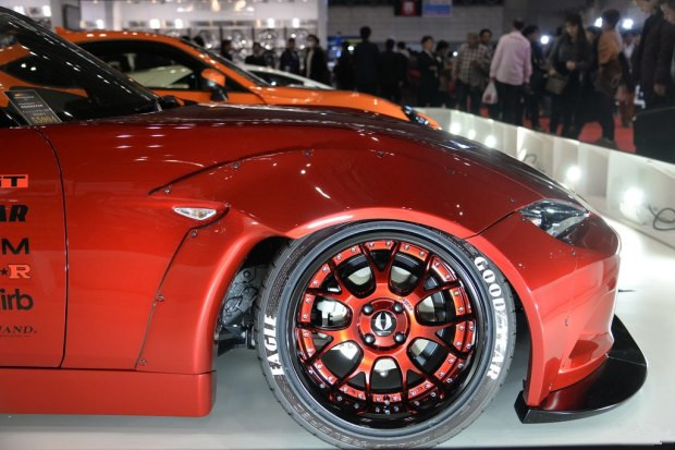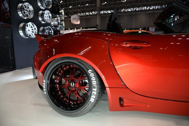 另一辆AIMGAIN改装的MX-5相同选用宽体风格,并且效果不输GReddy。该车装备了外观细腻、重视细节的“文雅范儿”轮圈,轮胎选用固特异Eagle系列。