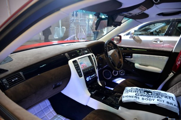 内饰向人深深展现了“舒服”二字的意义,大面积alcantara资料的包裹让座椅看上去就很柔软,车顶更是用相同的原料照顾,几盏小灯照顾下在扶手箱上铺设一块柔软的毛巾,几乎即是VIP的待遇。请疏忽安全带插扣这种不安全的东西,也千万不要仿效。至于后尾厢里放置的奢华音响单元,让你可以随时随地下车high起来……不过千万别去联想汽配城门口卖CD的小摊。