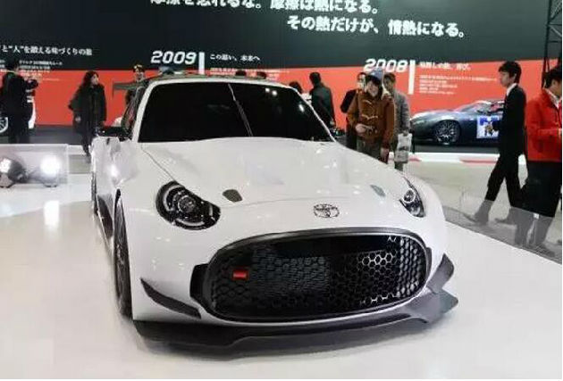 丰田S-FR概念改装车在原厂基础上加装了一套竞技风格的外观套件,这画风,简直了。大面积的进气格栅下为向前探出的前唇和风刀,这个角度看更加明显。