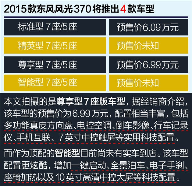 全面开放二胎,“砖家”说五座车不够坐了,要买七座车。赶巧了,东风风光370七座MPV来了。造型、配置、功能都不错,价格还实惠,预售价才6.09万元起。不管生不生,都来围观一下。