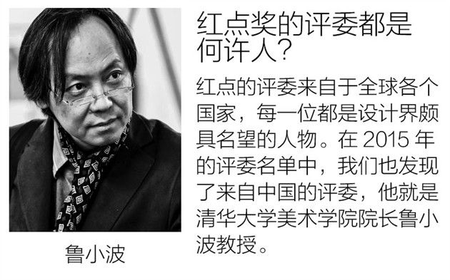 红点的评委来自于全球各个国家,每一位都是设计界颇具名望的人物。在2015年的评委名单中,我们也发现了来自中国的评委,他就是清华大学美术学院院长鲁小波教授。