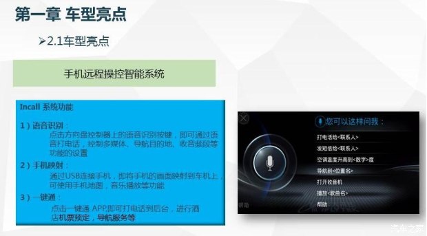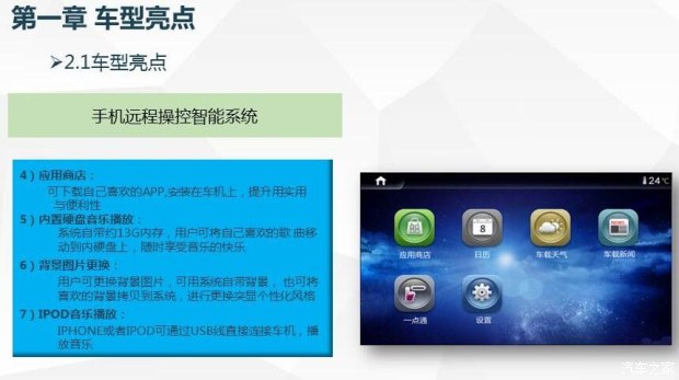 除了外观的细节变化之外,2016款CS75另一大亮点是部分车型增加手机远程操控智能系统,可通过手机App软件来远程控制车辆空调和解锁,同时可查询车辆信息以及具备防盗追踪等功能。此外,新款CS75的车载系统也进行了升级,增加手机映射、语音识别、应用商店、背景更换等功能。