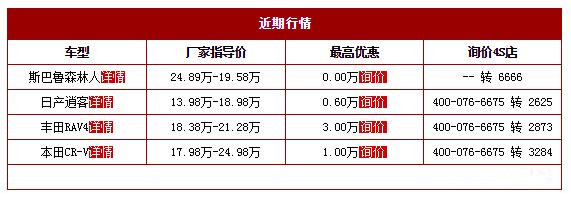 推荐车型:斯巴鲁森林人