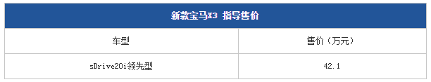 宝马X3 sDrive20i正式上市 售价仅42.1万元起