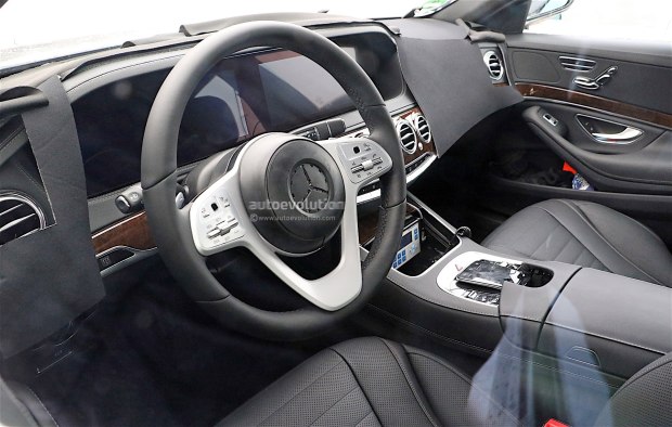 根据谍照,新款S级将仪表盘与中控显示屏整合为一体,取消了现款车型仪表盘右侧的按键。新款S级还配备了重新设计的三辐式方向盘,方向盘两侧多媒体按键布局有所改变,按键上部配备类似手机屏幕的触摸感应区域,驾驶员可通过手指即可全面控制多媒体系统,提升了科技型与便利性。
