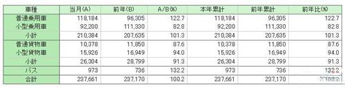 上个月普通乘用车注册量达到118,184辆,同比劲增22.7%;小型乘用车则同比下滑17.2%至92,200辆;600cc以下微型车销量为118,610辆,同比跌幅为13.0%。