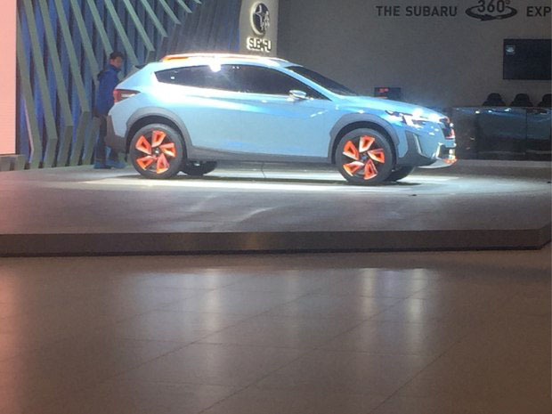 天翼汽车车讯 斯巴鲁XV Concept概念车将在2016日内瓦车展上正式亮相,日前我们已经在现场拍摄到了这款车,该车将成为新一代斯巴鲁XV的设计雏形。