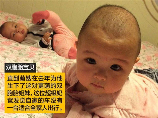 随着政府对二胎的开放,如今的很多家庭都拥有了两个孩子,而这可愁坏了一家之主们,想要一家人出行,原来的5座车貌似显得不够用了,两辆车又显得有些铺张浪费。如此一来,7座车型成为了他们首要考虑的目标。有人说“哪儿有那么多人生两个孩子呀?”远在天边,近在眼前,易车的编辑部里就有这么一位两个孩子的超级奶爸,相信经常关注易车网的朋友见到他一定不会陌生,他就是来自评测部的张萌(私下里,我们都称之为萌哥)。当然,萌哥家的两个孩子和政策并没有什么关系,全因他家的这对儿宝贝是双!胞!胎!