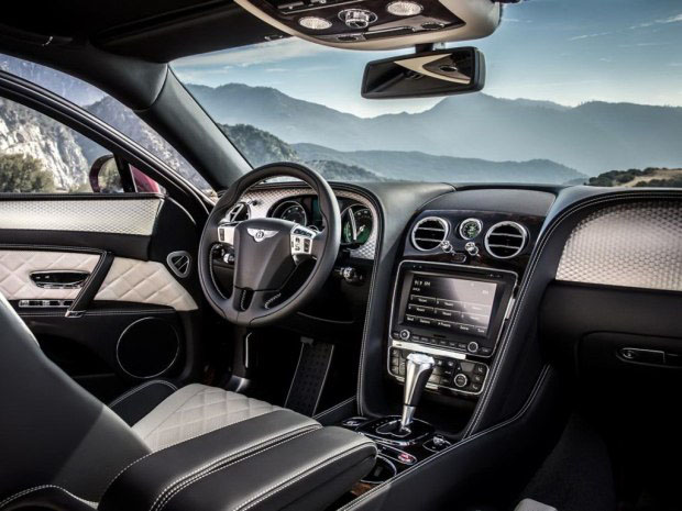 内饰部分,新车内部配色以及选材有所调整,并换装了一款带有换挡拨片的三辐式方向盘,车内整体氛围依然延续了宾利车型豪华典雅的风格。