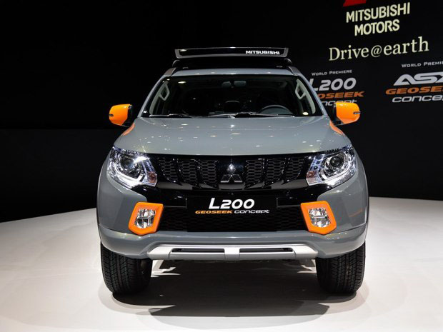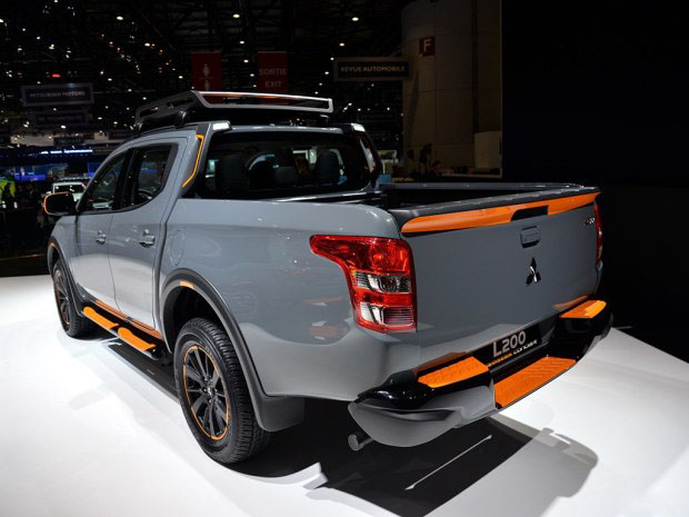该车型基于L200而打造,在外观方面,并采用了橙色与黑色涂装进行搭配,使得本来有些沉闷,更多时间作为工具使用的皮卡多了些时尚的色彩,非常醒目的颜色让人看过之后很难忘记。而在外观大体保持不变的情况下,该车型细节上也有所调整,其中L200 GEOSEEK概念车将随车提供一套可手动安装的车顶照明灯。