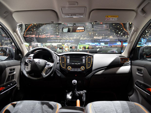 内饰设计上,概念车基本保持了三菱LC200普通版车型的设计,但在配色方面,采用了与外观极为相似的设计理念,深色内饰材质配色橙色装饰条点缀使新车看起来非常时尚。