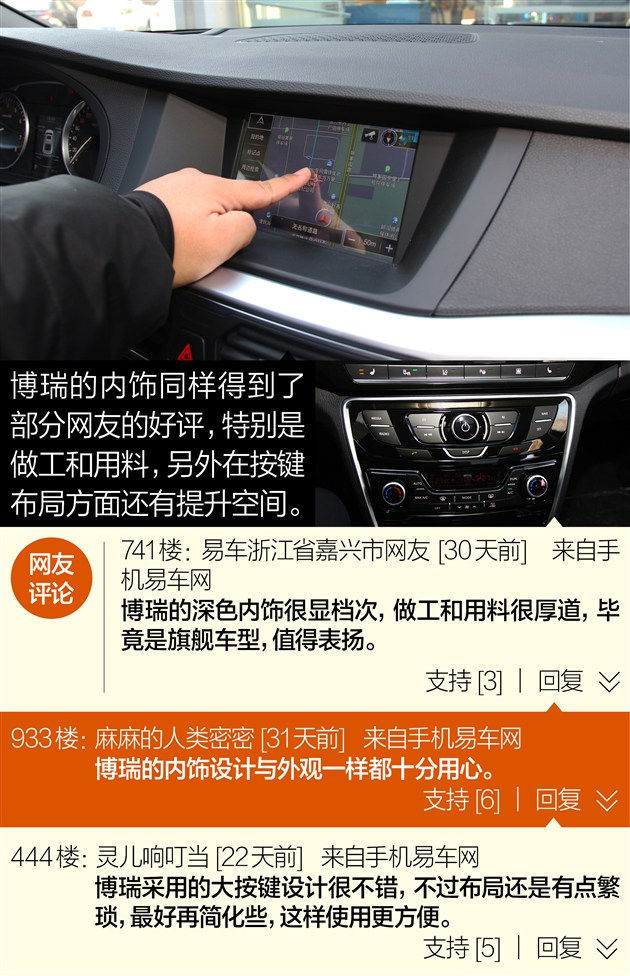 吉利博瑞于4月9日上市,推出3种排量共七款车型,其售价区间为11.98万-22.98万元。该车是吉利旗下首款引入沃尔沃安全技术理念的车型,同时也是吉利力争重回自主品牌前列的扛鼎之作。博瑞的潜在竞争对手也由同级别自主品牌车型扩大到部分合资车型。这款车一经推出也吸引了不少网友关注,同时对于它的外观、内饰、配置等方面都有自己的看法,褒贬不一,下面我们一起去看看网友们对这款车的犀利评价。