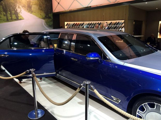 天翼汽车车讯 2016年日内瓦车展现场报道,宾利正式发布了慕尚Grand Limousine By Mulliner,新车由宾利旗下Mulliner打造而来,采用六座设计。