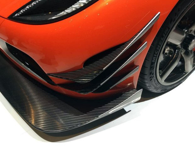 新车在外观上参考了Agera One:1车型的外观设计风格,整体采用橙红色搭配碳纤维的外观搭配,前保险杠两侧的碳纤维扰流板增加至四片,使其看起来更加具有攻击性。
