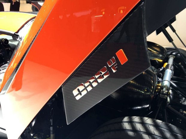 车尾部分,由于展车开启尾部发动机舱盖,我们尚不能看出其具体变化,但根据官方数据显示,新车在达到260km/h时尾部主动式扰流板可提供455kg下压力,当达到440km/h时可提供650kg下压力。此外,新车侧面翼子板上One of 1标识与老款车型不同,同时这也代表着该车仅有一台的特殊身份。