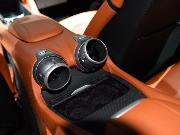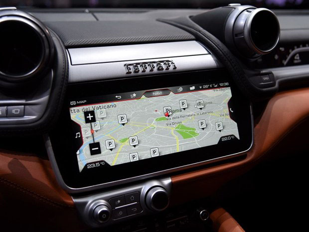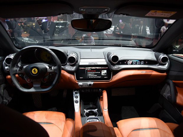 内饰部分,法拉利GTC4Lusso除了保留FF的方向盘和仪表盘设计之外,内饰部分的其他细节均采用全新造型,10.25英寸液晶显示屏增添了车内科技感,中控台部分的功能按键和空调出风口造型均有变化。