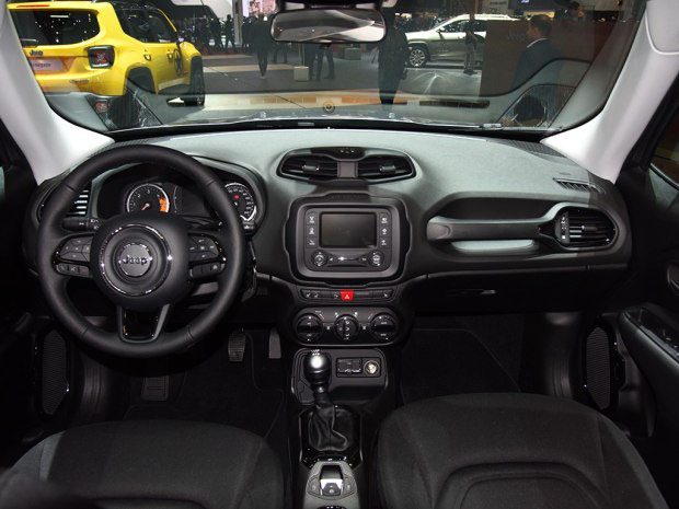 内饰方面,新车内部同样采用了黑色系的主色调,整体与外观风格较为统一。配置上,该车装配了带有Jeep独特标识的绒布座椅、倒车影像以及一个选装包,其中包括远程启动、双区自动空调等。