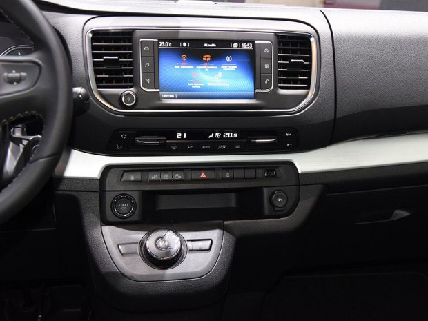 内饰设计整体线条简约,换挡杆是旋钮式,位于中控台下部,整体感强,另外两个后侧滑门为电动控制,同时还配备了导航和自动空调等配置。