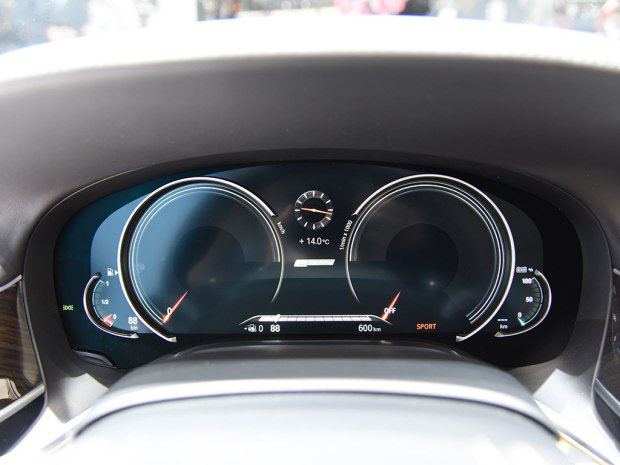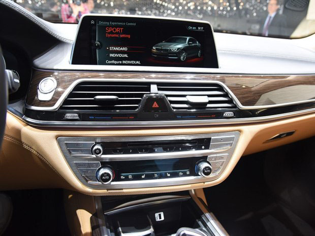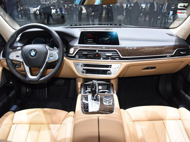 宝马740Le内饰设计与现款宝马7系车型一致,新车采用了浅色调内饰风格,并在中控台等部位采用了抛光实木与拉丝铝的装饰,另外新车采用了全液晶仪表盘。