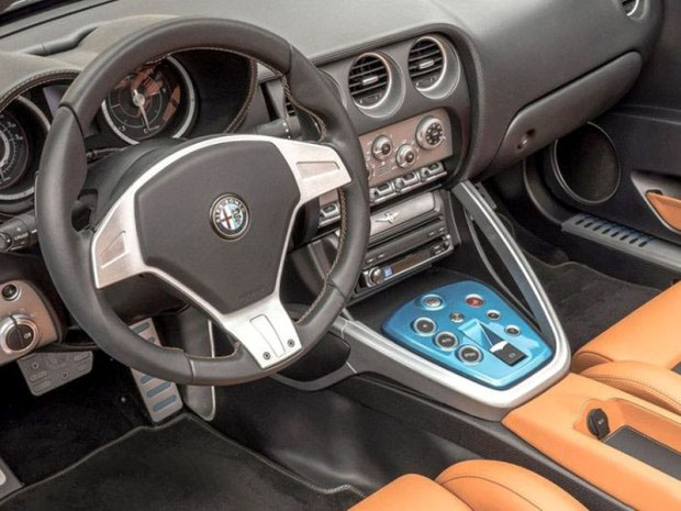 新车采用了阿尔法罗密欧标志性的倒三角进气格栅以及飘逸流畅的车身线条,整体设计充满了复古元素。新车车身采用浅蓝色涂装,充满了地中海的浪漫气息。另外新车配备了可折叠的碳纤维顶棚,在不使用时可收入后备厢中。