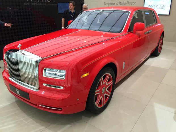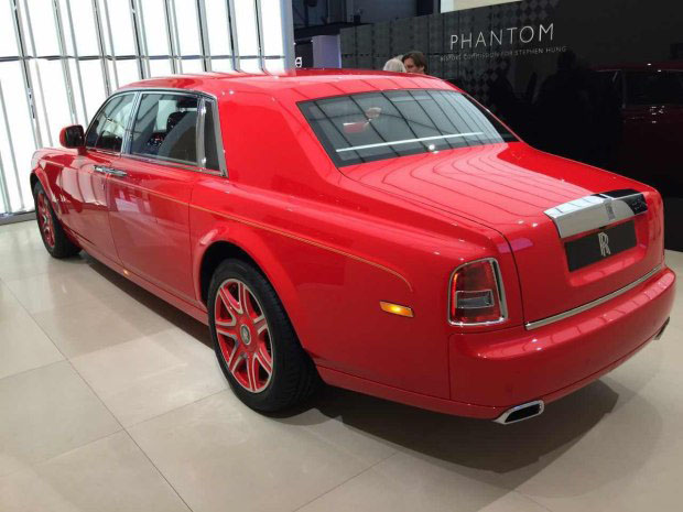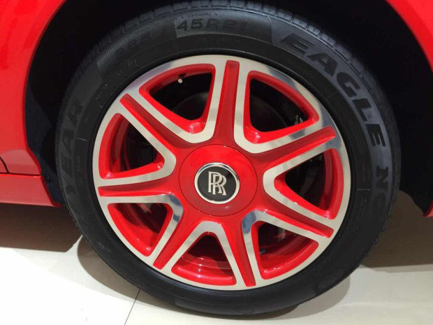 本次亮相的幻影路易十三(Louis XIII)特别版车型车身通体采用了鲜艳的亮红色涂装,据悉,该红色车漆由劳斯莱斯特别定制,并被定名为“永时红(Stephen Red)”,其装配的定制21英寸七辐轮圈也使用了此种红色喷涂。