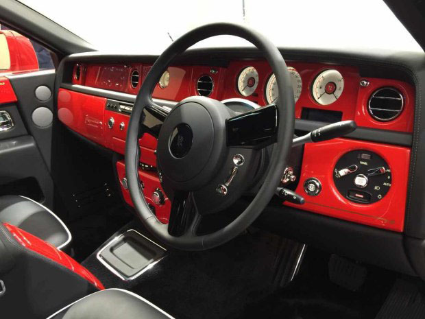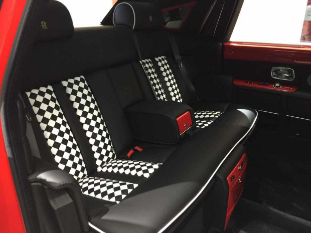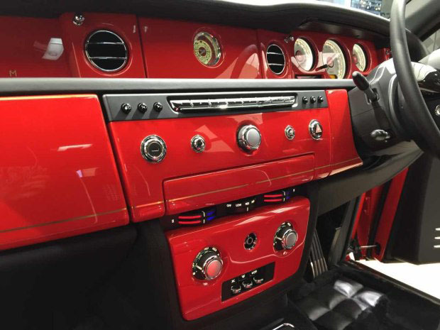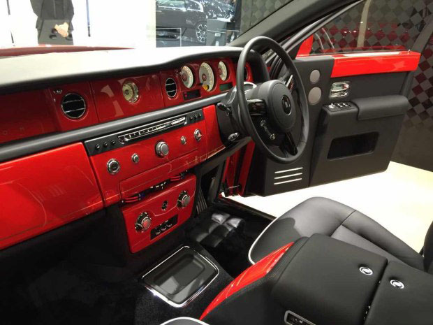 内饰方面,新车一改普通版幻影车型所装配的木纹中控台饰板,其采用了与车身颜色相同的“永时红”,同时,该车中控台所配备的定制时钟是劳斯莱斯汽车与世界著名珠宝品牌格拉夫(Graff)共同设计研发。此外,这款车后排座椅也融入了澳门路易十三酒店特色的黑白方格图案。