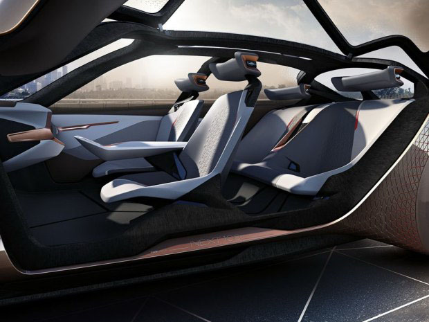 在材料的选择上,宝马概念车“VISION NEXT 100”的设计师主要采用了可回收或可再生材料制成的纤维。表面和内部的碳纤维部件,如侧围板,均用标准碳纤维生产中的节余材料制成。此外,其车舱内采用了高品质的织物和易于回收的材料,并且取消了真皮内饰。