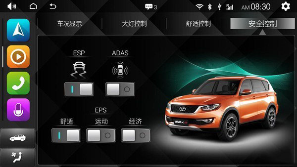 除了以上配置,凯翼X3的icar1.0系统还带有车道偏离警示、盲区监测警示、全景泊车、座椅加热控制等功能。另外,icar还配备汽车远程控制功能,可以与手机APP实现互联,车主在手机上可以完成包括远程设防、远程控制天窗、远程升降车窗、车辆定位、远程寻车、远程送风这几项功能。