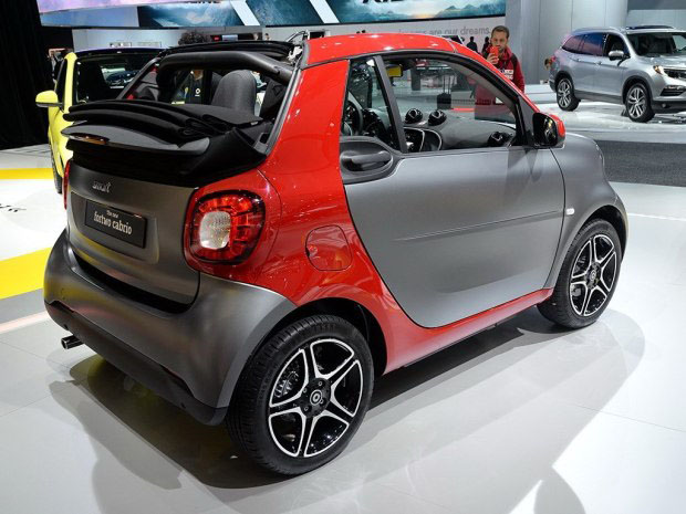全新smart fortwo敞篷版和普通版车型基本保持一致,B柱宽度有所缩减。根据官方发布的信息,smart fortwo敞篷版装配了电动伸缩式的帆布顶棚,完全打开只需12秒,帆布顶棚有黑色、蓝色和红色三种颜色可选,顶棚内还集成有后风挡。