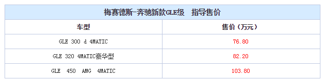 售价76.8~103.8万元 奔驰GLE级新车正式上市