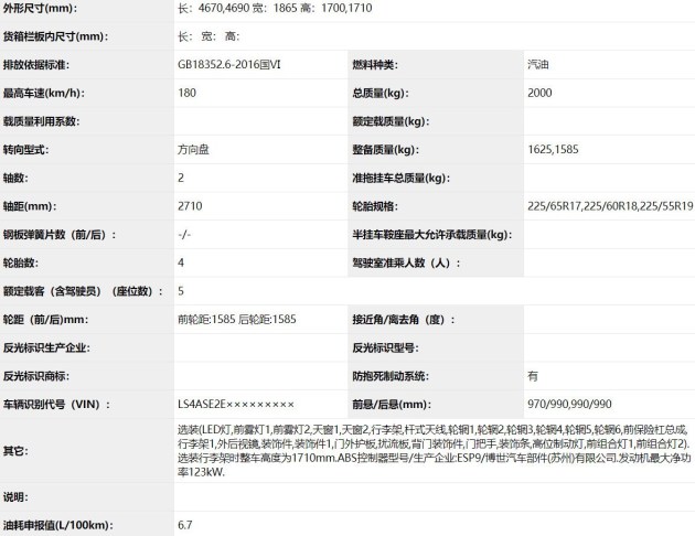动力系统方面,新车搭载1.5T发动机,最大功率131kW,油耗申报值6.7L/100km,参数与现款1.5T车型一致,预计动力系统不会有本质变化,预计仍旧会搭载6挡自动变速器,采用前轮驱动。
