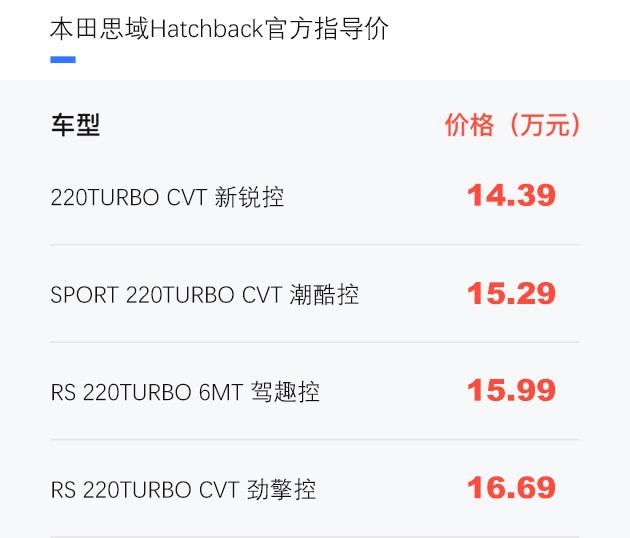 编辑点评:与三厢版思域车型相比,Hatchback车型的售价看似不低,但仔细观察其将定位的细分市场就不难发现,Hatchback车型将主攻年轻消费者,并且还特意推出了搭载运动包围的车型,因此免去了消费者后期改装的麻烦,这么来看新车的售价并不算高。