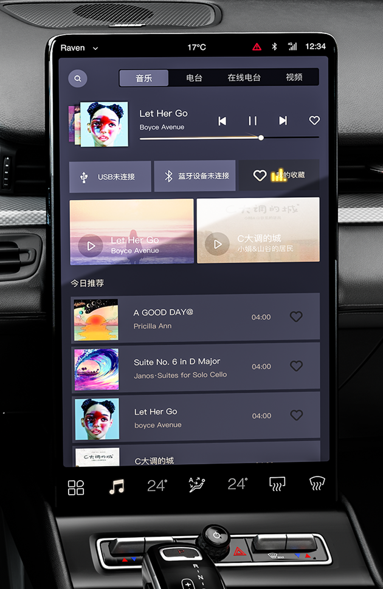 新车内饰以海岸线为灵感打造,整体设计简约,并采用了贯通式的出风口。同时中控台以皮质包覆,增加了车辆的豪华感。配置方面,车辆配备了14.6英寸中控屏幕,并且采用了IPS面板,此外,新车还配备了液晶仪表盘,增加了车辆的时尚感。三辐式运动型多功能方向盘也采用真皮包裹,搭配上电子换挡杆,进一步增强了车辆的运动感。