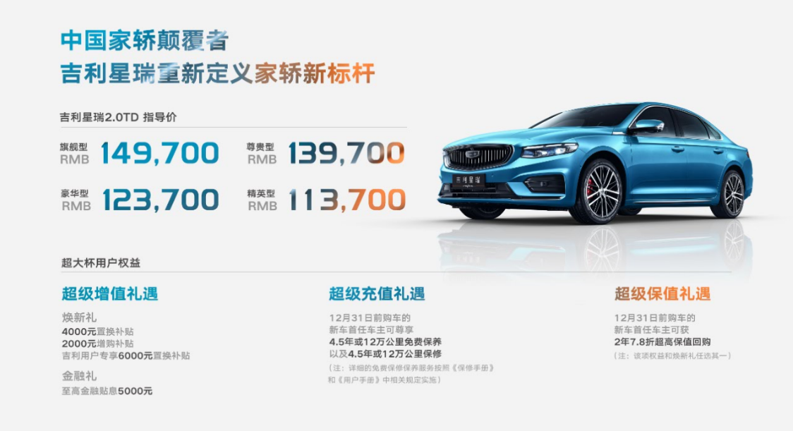 官方指导价11.37万元起、2年7.8折超高保值回购 吉利星瑞全网上市