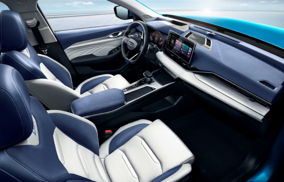 在内饰造型上,吉利星瑞延续了“时空变奏”设计理念,以简洁线条的变奏和律动,打造全新“时空交叠座舱”设计,彰显时空延展的交叠律动之美。清新优雅的游艇蓝与高级灰配色,触感良好、质感上乘的大面积皮质包覆,勾画出简洁细腻的高质感内饰设计;兼具舒适及包裹性的高级头层牛皮座椅、量身打造的BOSE高级音响系统和世界顶级车载香氛系统等,为用户带来了媲美豪华品牌的氛围和档次感。