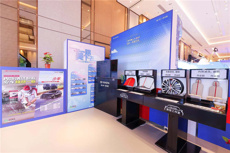 互动体验区设置了可供现场来宾互动的卡罗拉形象互动拍照墙,以及丰享汇展位和二手车展位;在车主生活体验区,则复刻了全面升级后的第三代智慧门店,并设计了供现场来宾参与互动的智慧门店互动区和智慧门店休息区;
