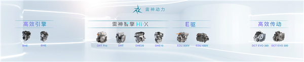 “雷神动力”产品矩阵包括雷神智擎Hi·X混动系统、高效传动、高效引擎以及新一代电驱装置“E驱”。其中,雷神智擎Hi·X作为世界级模块化智能混动平台,包含1.5TD/2.0TD混动专用发动机,以及DHT(1挡变速器)/DHT Pro(3挡变速器)混动专用变速器,支持A0~C级车型全覆盖,同时涵盖HEV、PHEV、REEV等多种混动技术。雷神智擎Hi·X拥有六大混动行业天花板级技术,成为世界级模块化智能混动平台,创下多个世界第一,在核心技术上全面超越日系混动。