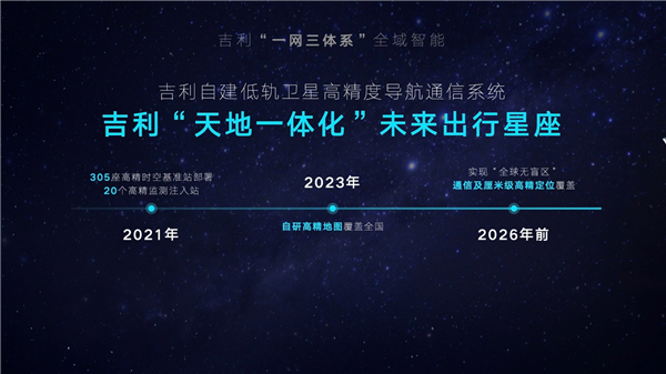 智能汽车软硬件体系下,数据才是用户体验进化的源动力。吉利自建的地轨卫星高精度导航系统目前已完成305座高精时空基准站的部署。计划2026年前,完成物联通信卫星及导航增强低轨星座组网,实现“全球无盲区”的通信及厘米级高精定位覆盖。由吉利测绘采集的高精地图,将在2023年覆盖全国,未来将持续为“智能吉利科技生态网”提供“天地一体”的数据和算法验证。