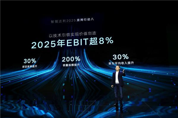 龙湾行动八:以技术引领实现价值创造,2025年实现EBIT达8%以上。吉利将通过“全面架构造车”提升规模效应,降低车型研发及供应链成本,研发效率提升30%,同时实现全链路数字化智能制造、全球技术输出,最大化地降本增效。到2025年,吉利将实现销量规模提升2倍,市场占有率中国品牌第1,实现单车平均收入提升30%。