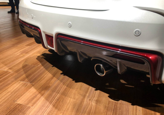 车尾部分的设计十分紧凑,车顶部分突出的熏黑扰流板十分的平直,形成了尾翼一般的造型来承托新车的运动氛围。下方的保险杠底部还有着大面积的熏黑扰流槽设计,结合红色饰条以及大口径的排气,让新车更加炫酷动感。