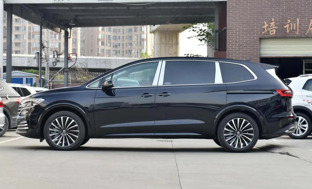 上汽大众威然的侧面轮廓更像是SUV和MPV的融合,车身的腰线也是比较锋利,很有力量感,尾部显着比较宽厚敦实。