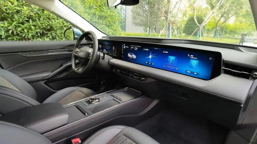 内饰方面,蒙迪欧1.5T车型依旧提供27英寸贯穿式联屏,搭载福特最新一代SYNC+2.0智行互联系统,系统支持多点触控、AI语音识别、手势控制等交互方式,换挡方式依旧为旋钮式。