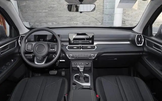 内饰部分,中控台配备了一块悬浮式中控屏,方向盘后方则是一块与中控屏尺寸接近的液晶仪表。同时,新车挡杆处采用的依旧是经典设计元素,辨识度比较高。