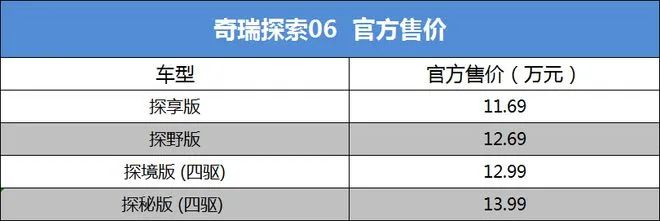 提供前驱及四驱车型!奇瑞探索06正式上市,11.69万元起!