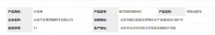 动力方面,小米SU7配备宁德时代的三元锂电池,前后电机功率为220kW/275kW,也有弗迪的磷酸铁锂版本,电机功率为220kW。申报信息显示,新车由北京汽车集团越野车有限公司生产,有Max和Pro两个版本,预计会在辅助驾驶能力上有所区分。