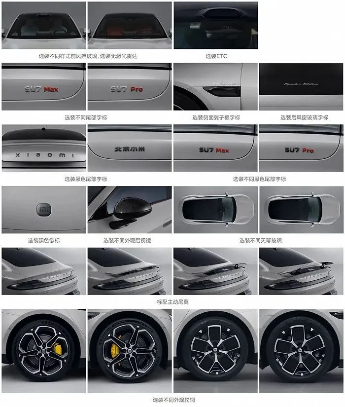 尾部“xiaomi”的拼音彰显它的身份,后包围的银色装饰突出力量感,搭配主动尾翼更凸显运动气息。新车配备两款不同的花瓣状轮圈,搭配黄色卡钳,显得年轻活泼。