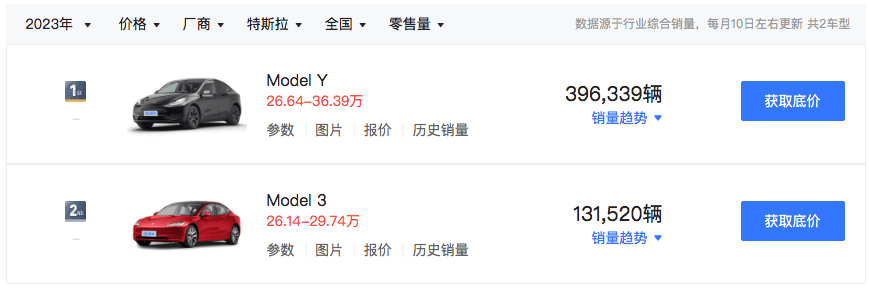 据乘联会零售数据显示:在2023年第四季度成功交付了近48.32万辆汽车,特斯拉目前90%的销量均由Model 3和Model Y两款车型贡献,目前在售的是,2023款特斯拉Model 3焕新版车型。