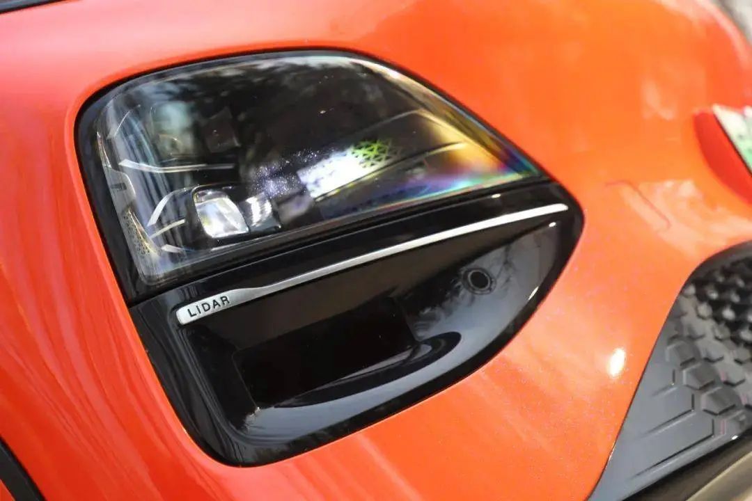 小鹏G6外观较为圆润,造型年轻时尚。前脸采用Robot Face家族化设计,分体式大灯下方是两颗用于驾驶辅助的激光雷达。